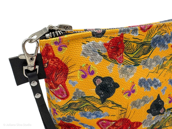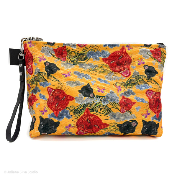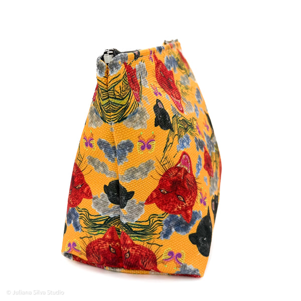 Crafted from resilient canvas with a denim-lined interior, the Volcano's Roar Yellow makeup bag delivers professional-grade organization for beauty enthusiasts and travellers alike. Two strategically placed inner pockets maximize storage efficiency, while the reinforced metal zipper—finished with a vegan leather pull and ergonomic side tab—ensures reliable performance through daily use. This multifunctional piece seamlessly transitions from makeup storage to travel organizer or desk accessory, making it an indispensable addition to any lifestyle.